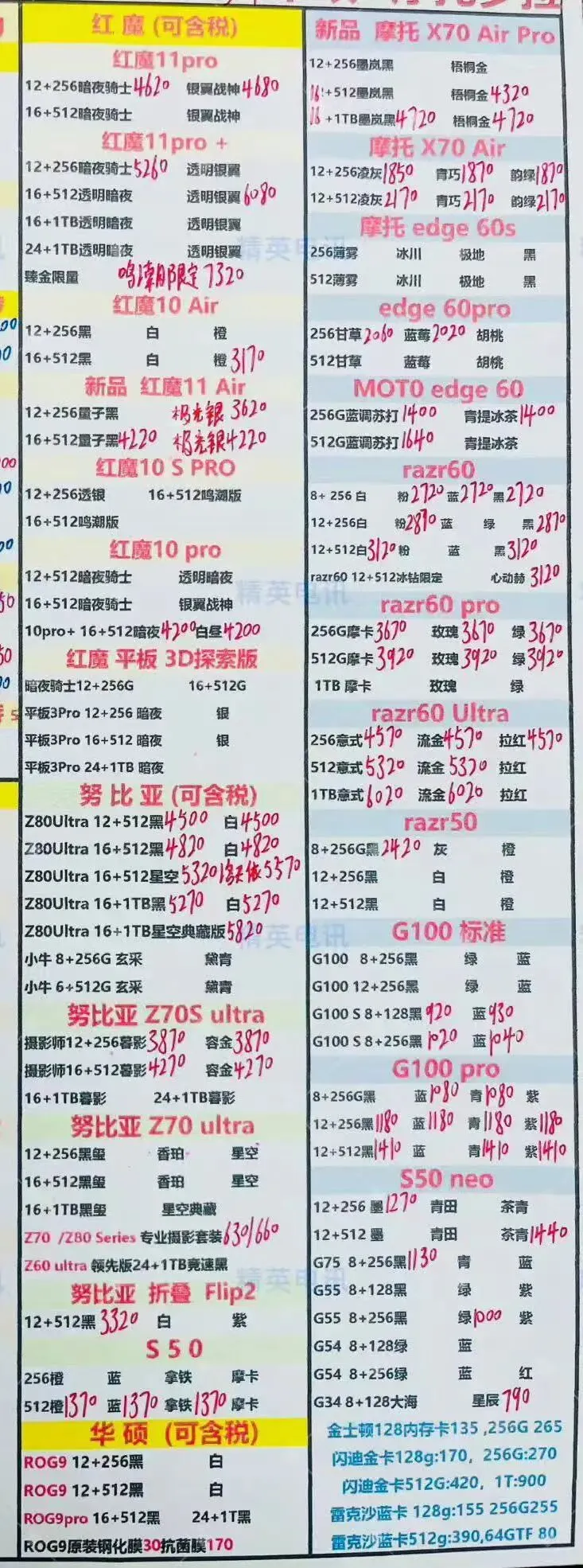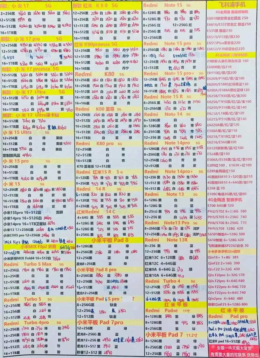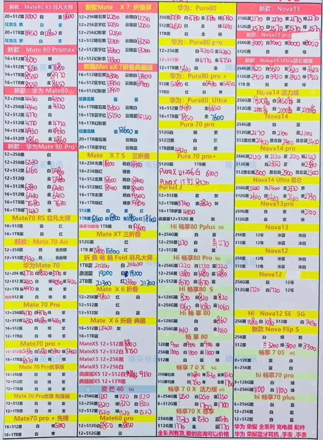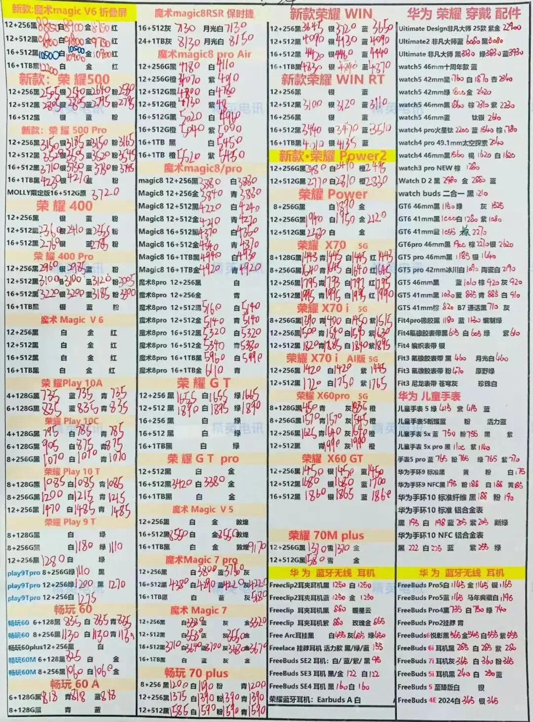 最新全新原封国行华为荣耀小米一加红魔等手机批发报价