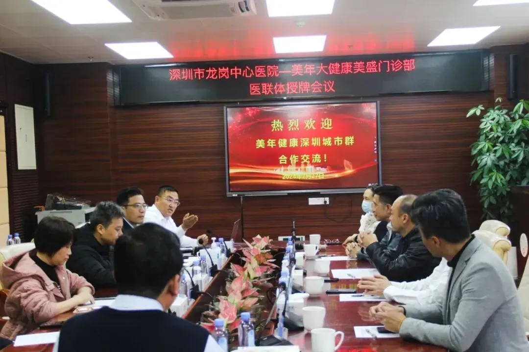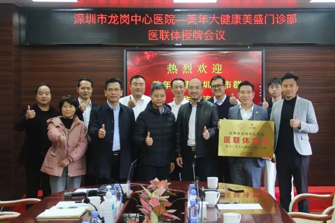 2024年2月27日,美年健康集团深圳城市群与深圳市龙岗中心医院举行了一场具有里程碑意义的医联体授牌仪式,美年健康集团深圳美盛门诊部成为深圳市龙岗中心医院的医联体合作单位,是深圳市龙岗中心医院医联体中首家体检机构,这标志着双方在整合区域医疗资源、优化医疗服务流程方面迈出了坚实步伐。此次合作将围绕“资源共享、优势互补、协同创新、便民惠民”的原则,共同构建覆盖健康体检、疾病预防、会诊平台、诊断治疗、康复随访在内的全流程医疗服务链。
