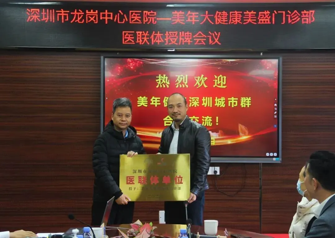 双方经过深入的交流,郭盛院长正式授牌给美年健康集团深圳美盛门诊部,标志着美年健康集团深圳美盛门诊部正式成为深圳市龙岗中心医院医联体的一员,双方将共同肩负起区域健康服务的责任与使命。