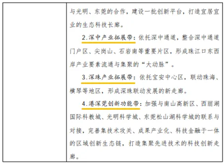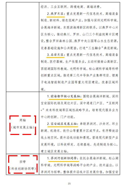 “三特”(机场东、燕罗、石岩三大功能节点)和 “四带”(四条跨市域的科技创新协同带),将宝安内部重点片区与光明科学城、东莞松山湖、中山、珠海等外部区域创新极点紧密串联,体现了强烈的区域协同和产业外溢思维。