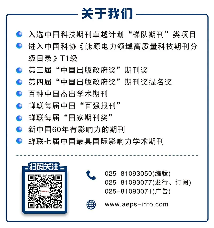 郑重声明:根据国家版权局相关规定,纸媒、网站、微博、微信公众号转载、摘编本微信作品,需包含本微信名称、二维码等关键信息,并在文首注明《电力系统自动化》原创。个人请按本微信原文转发、分享。