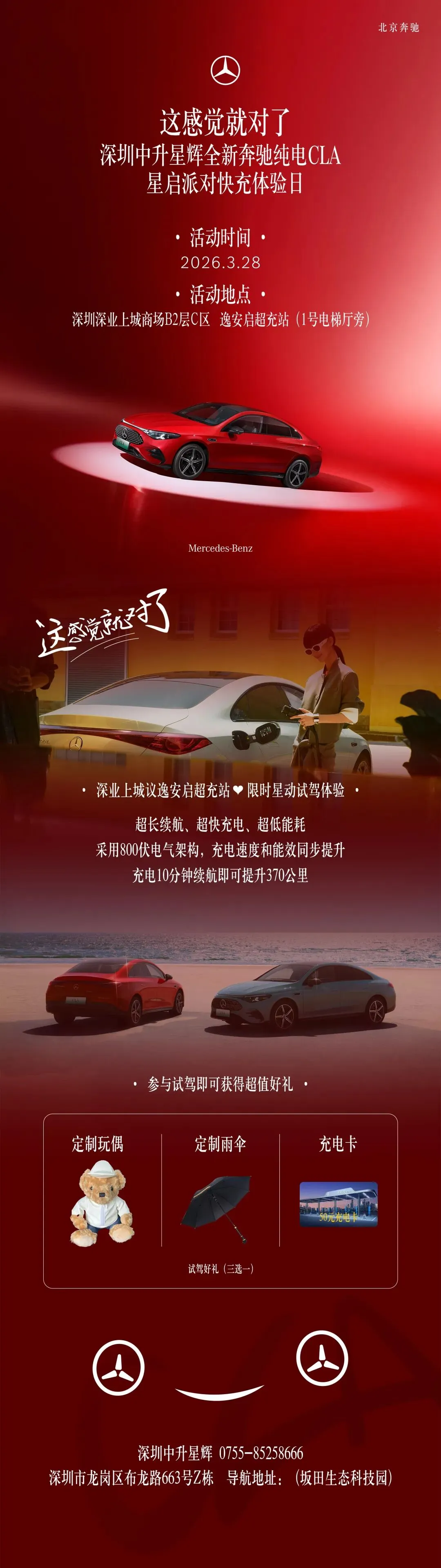 深圳中升星辉星启派对快充体验日|赴一场全新奔驰纯电CLA的快充之约