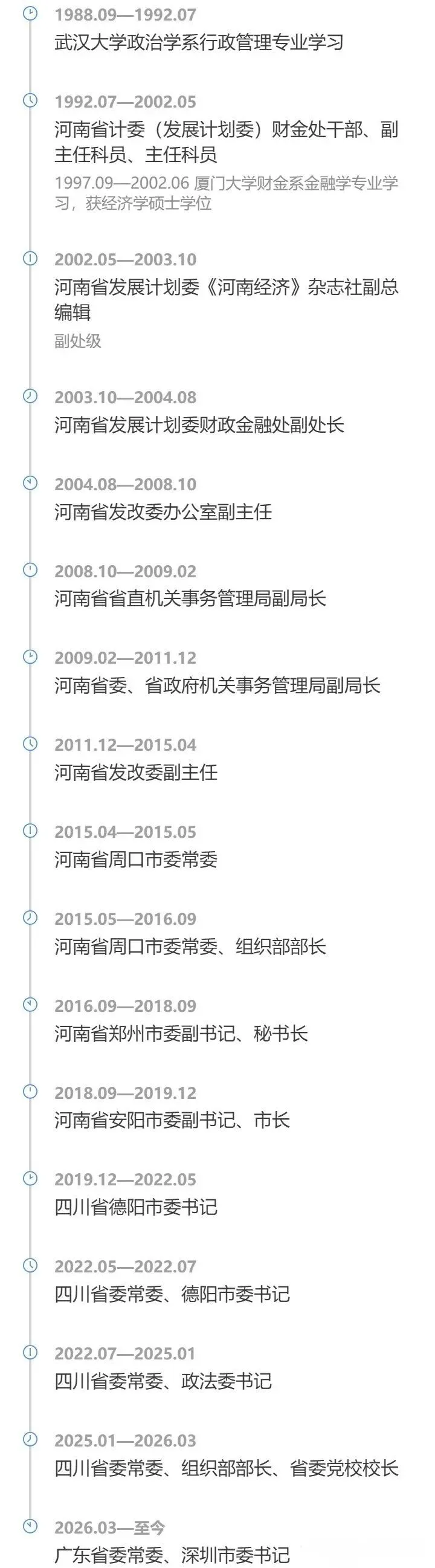 他曾在河南工作多年,2018年任安阳市市长。2019年12月,他跨省履新,调职四川省德阳市委书记。