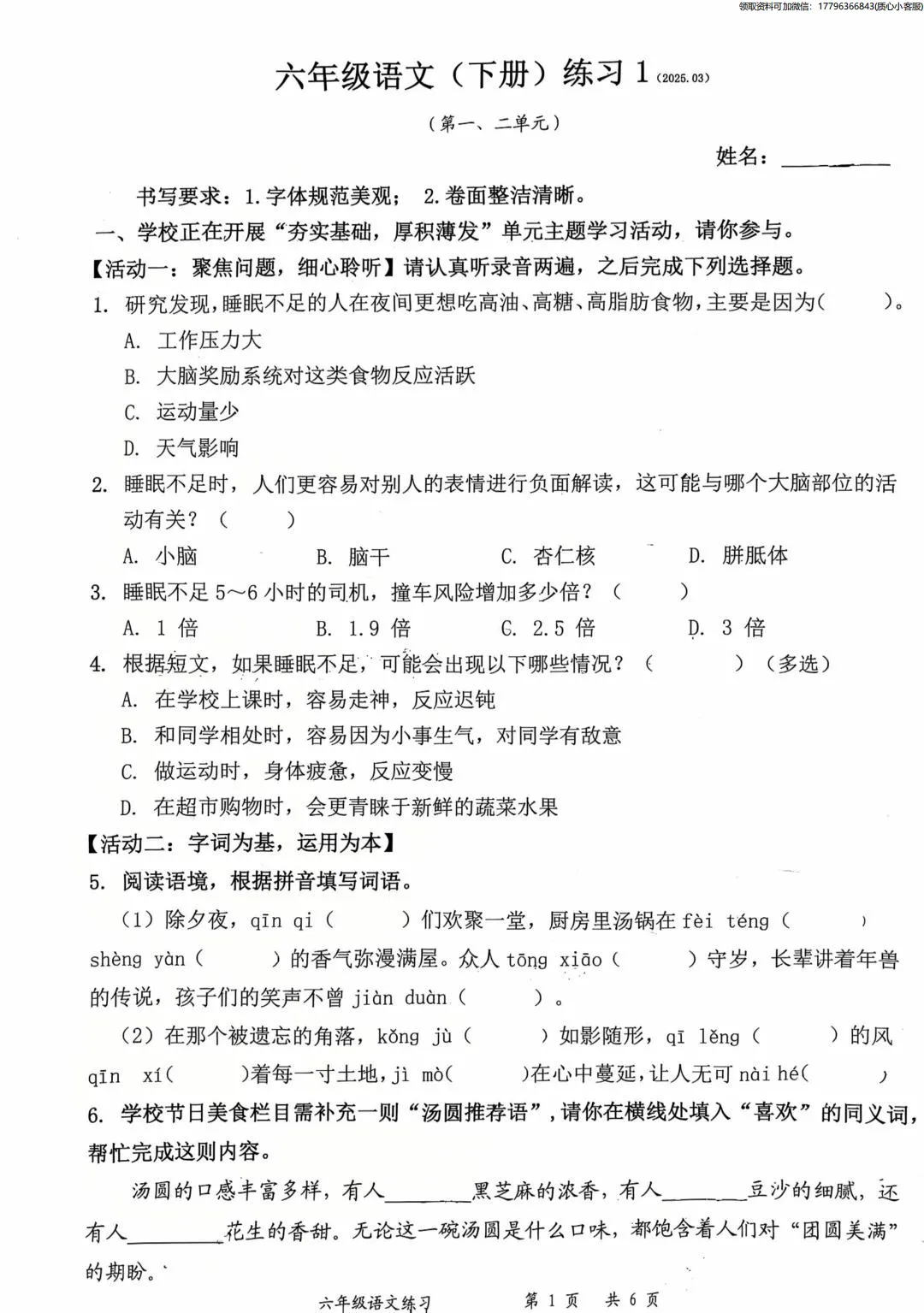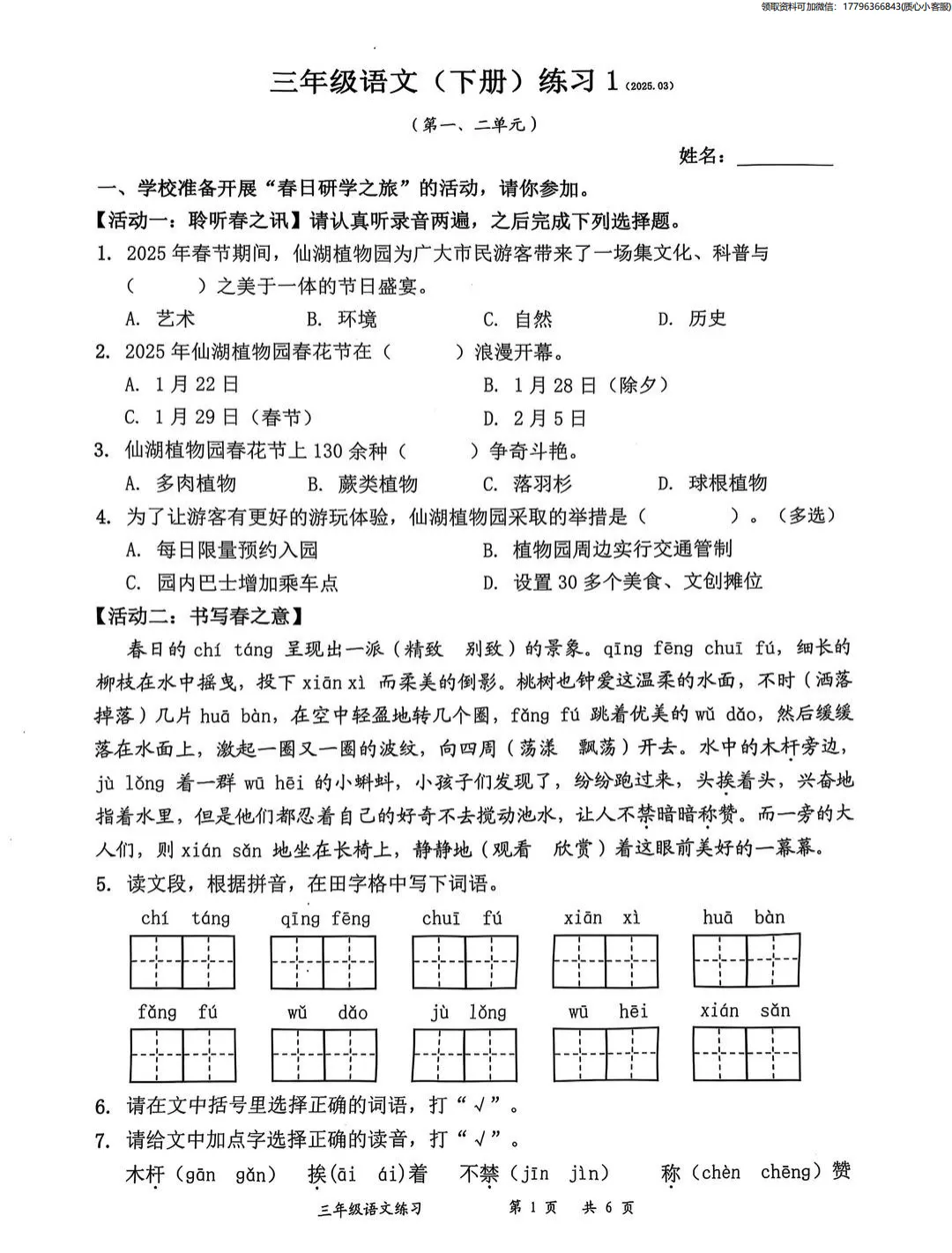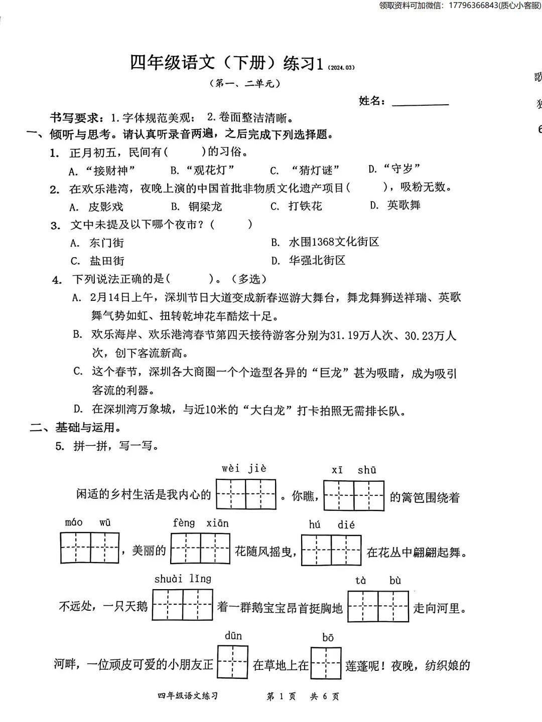 今天给大家去年同一时间罗湖区1~6年级各科单元试卷,部分含答案!需要高清PDF电子版可以文末领取哈~