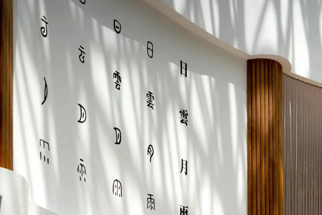 步入室内,教学楼以白色和原木色为主色调,柱子形似树干,木质的软装尽显自然教育的美感。