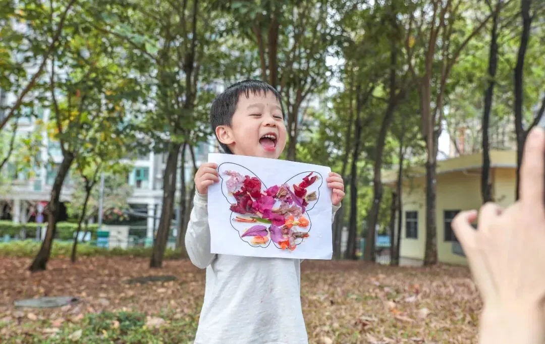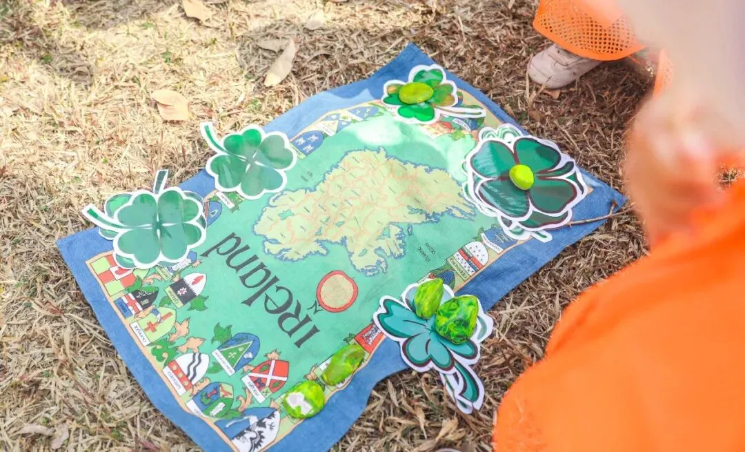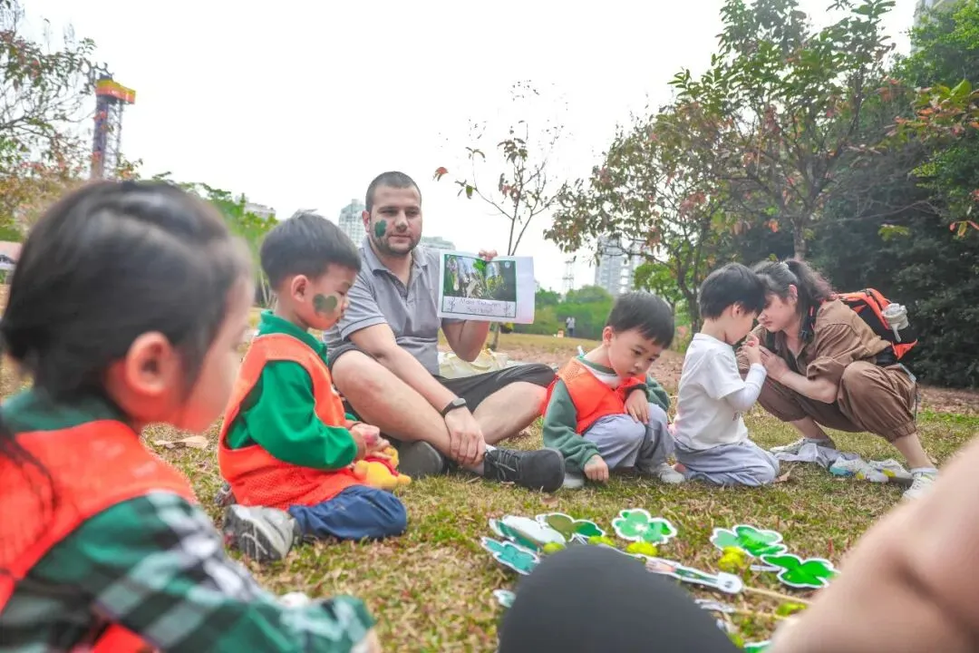 阅读课程、森林课程、食育食养、乐高STEAM创意课程、体育体能课程、艺术课和音乐课,科发的七大特色课程能让孩子们在不同的主题课上探索着自己的兴趣爱好。春意盎然,日暖风轻,在这样的天气到户外玩耍那是再合适不过了。每周固定的森林课程,已成为常态。孩子们乖乖排成一列,在老师的带领下来到科发的“后花园”——深圳市儿童乐园。每一片树叶都是一本书,每一声鸟鸣都是一堂课。科宝们在草地上寻找藏匿的“黄金”、用塑料瓶给昆虫做一个家、试着用捡到的花瓣拼出蝴蝶……孩子们玩得不亦乐乎,自然教育的种子也悄然生根。在一些节日到来之际,科发还会结合森林课举办相应的活动。比如外教老师就在课堂上给科宝们介绍了西方的圣帕特里克节,孩子们在脸上和手上用颜料画出三叶苜蓿的图案,即使相隔千里,也能沉浸式感受其他国家的风土人情。科发幼儿园鼓励学生们关注世界上不同地区的文化,倾心打造的森林课程在给孩子们带来新鲜感和探索欲的同时,也在培养着他们非凡的国际视野。除了森林课程,孩子们还能在另一处感受自然之美——食育食养课堂。