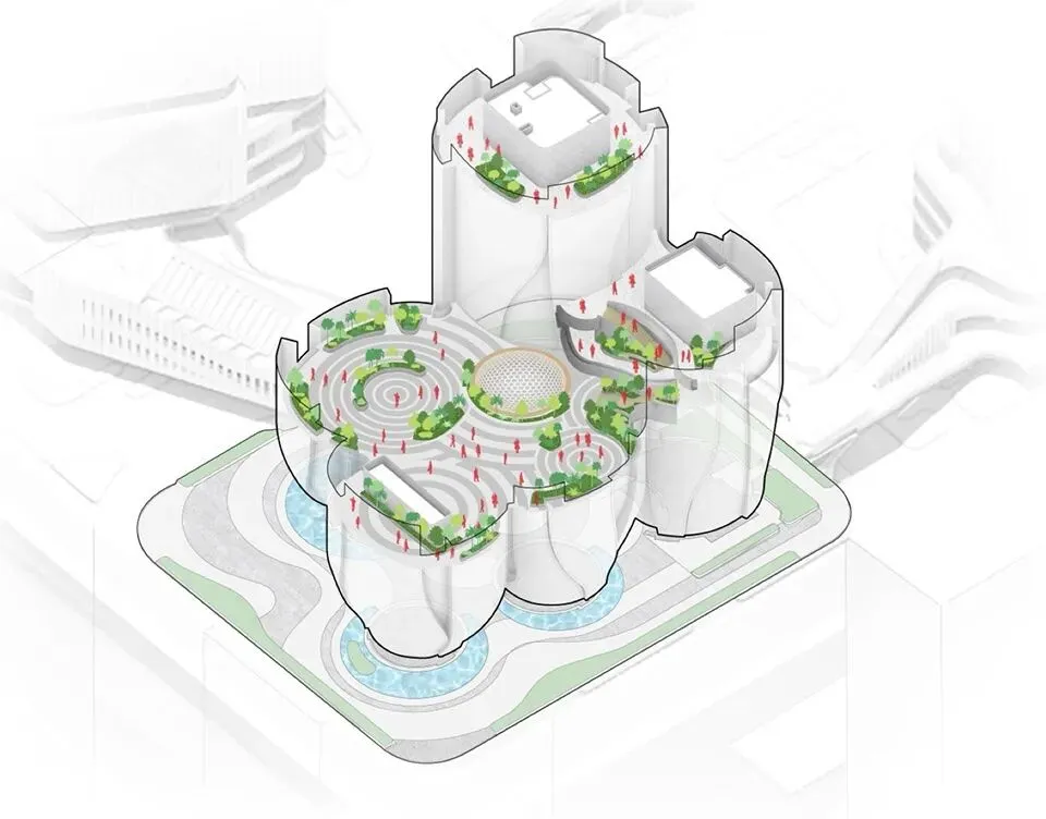 ▲环绕着中央绿洲的三维步道© Buro-OS