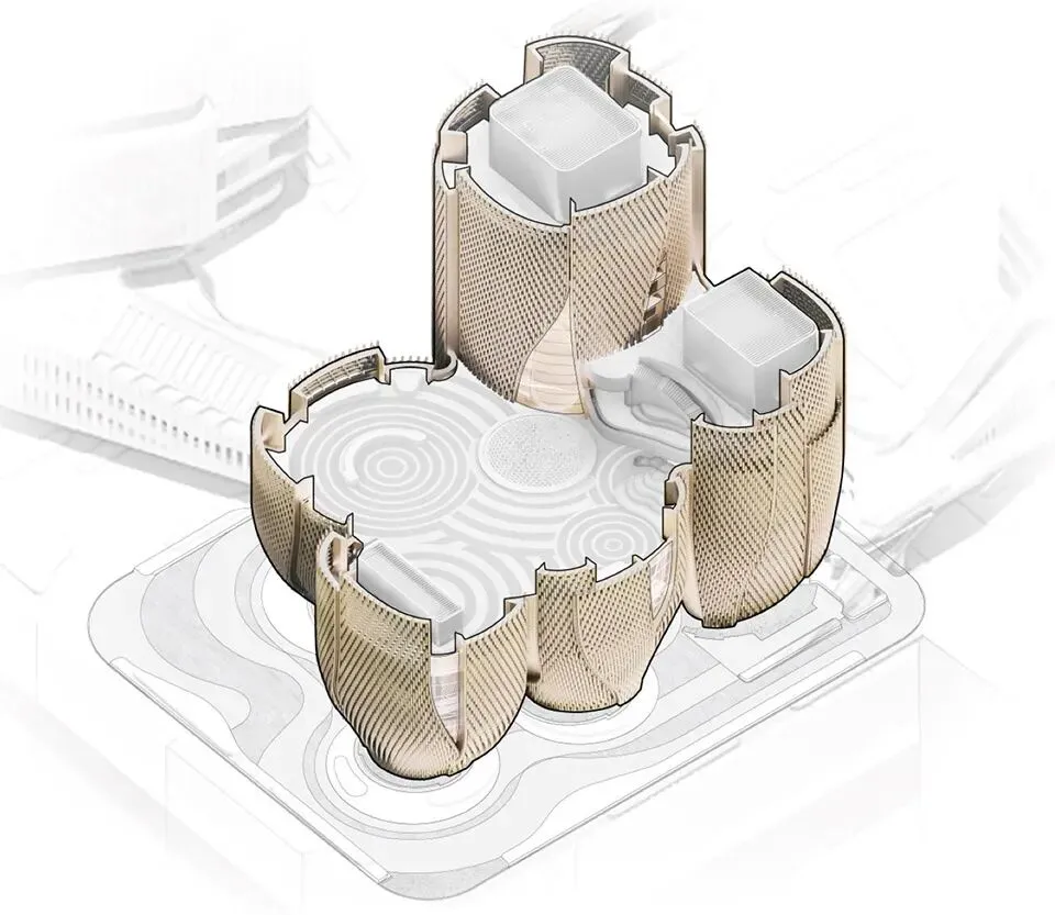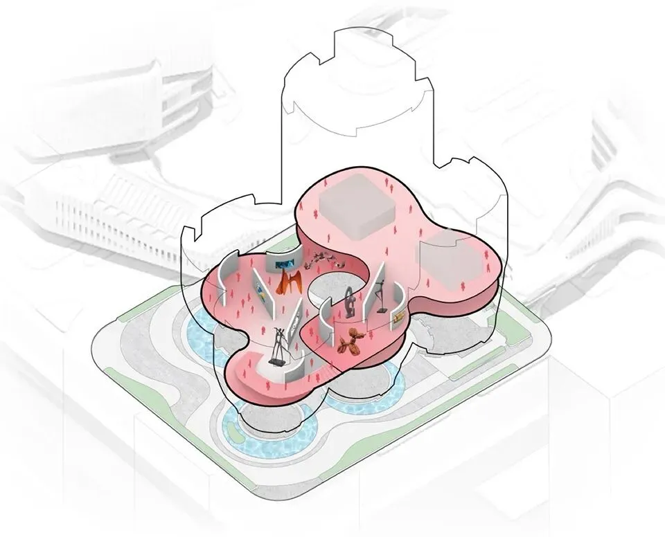 “我希望赋予这座美术馆一种独特而富有魅力的形象,尤其能激发年轻一代的好奇心。整个项目被构想为一次跨文化的互动体验,在拥有专注展示艺术和活动的展览空间的同时,也提供多种参与文化与建筑的方式。” —— Ole Scheeren