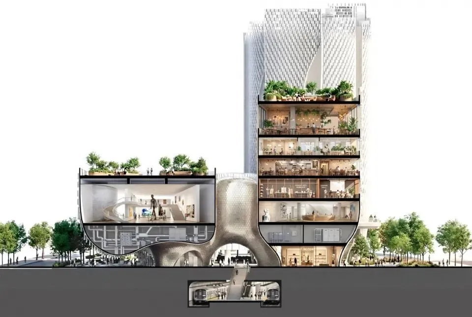 一个宏大的天窗将自然光引入公共广场,这里被构想为“艺术论坛”,全天24小时向公众开放,市民与访客可自由穿行与停留。艺术作品、临时装置与公共活动将在此激活空间,使日常的城市流动转化为文化体验。