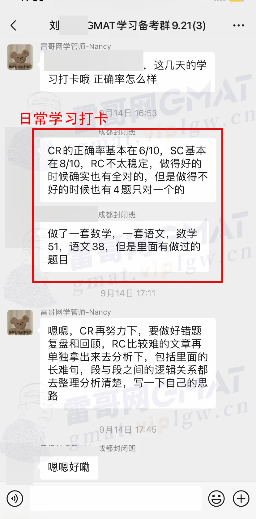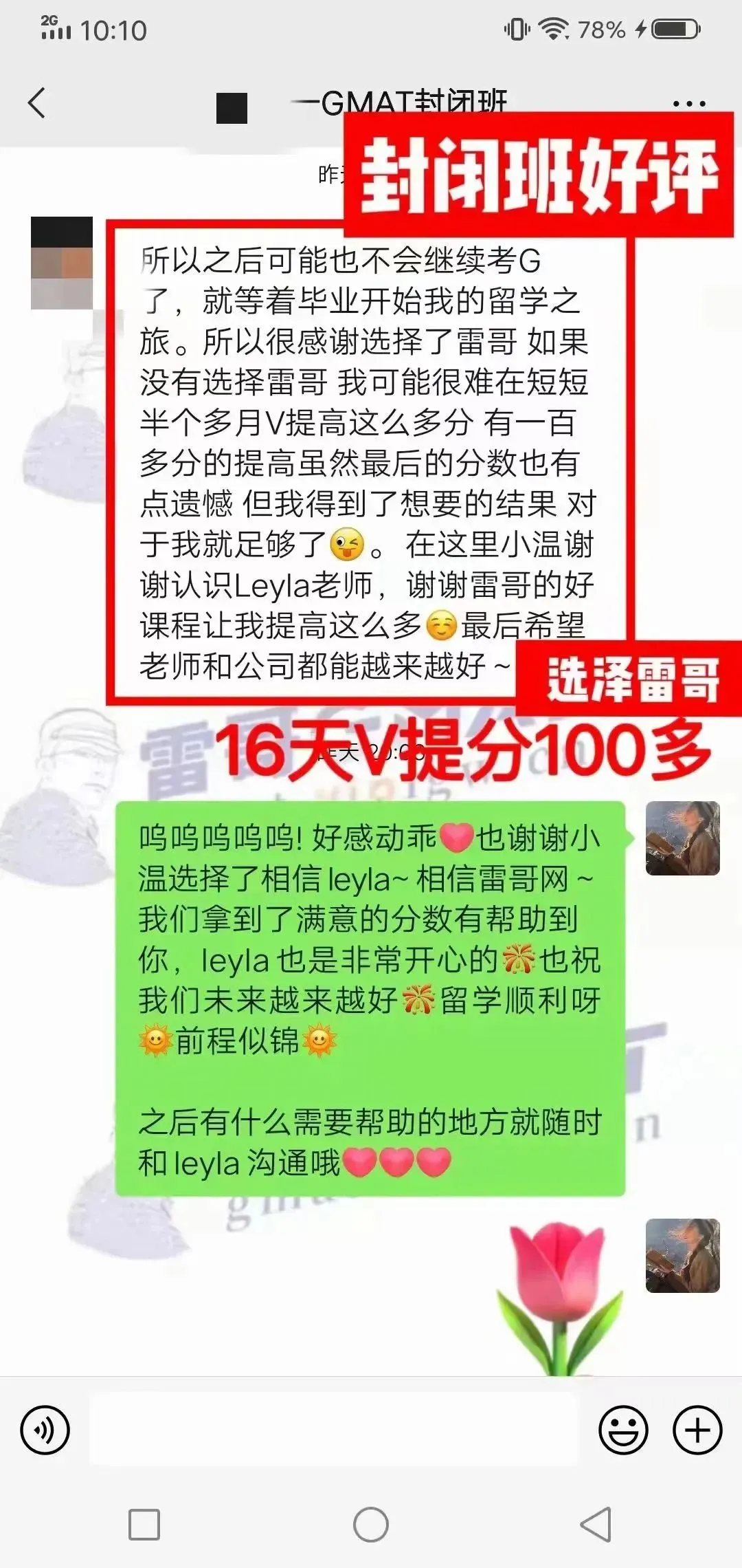 同时,上过咱们雷哥GMAT课程封闭集训班的同学,好评满满,收获良多。