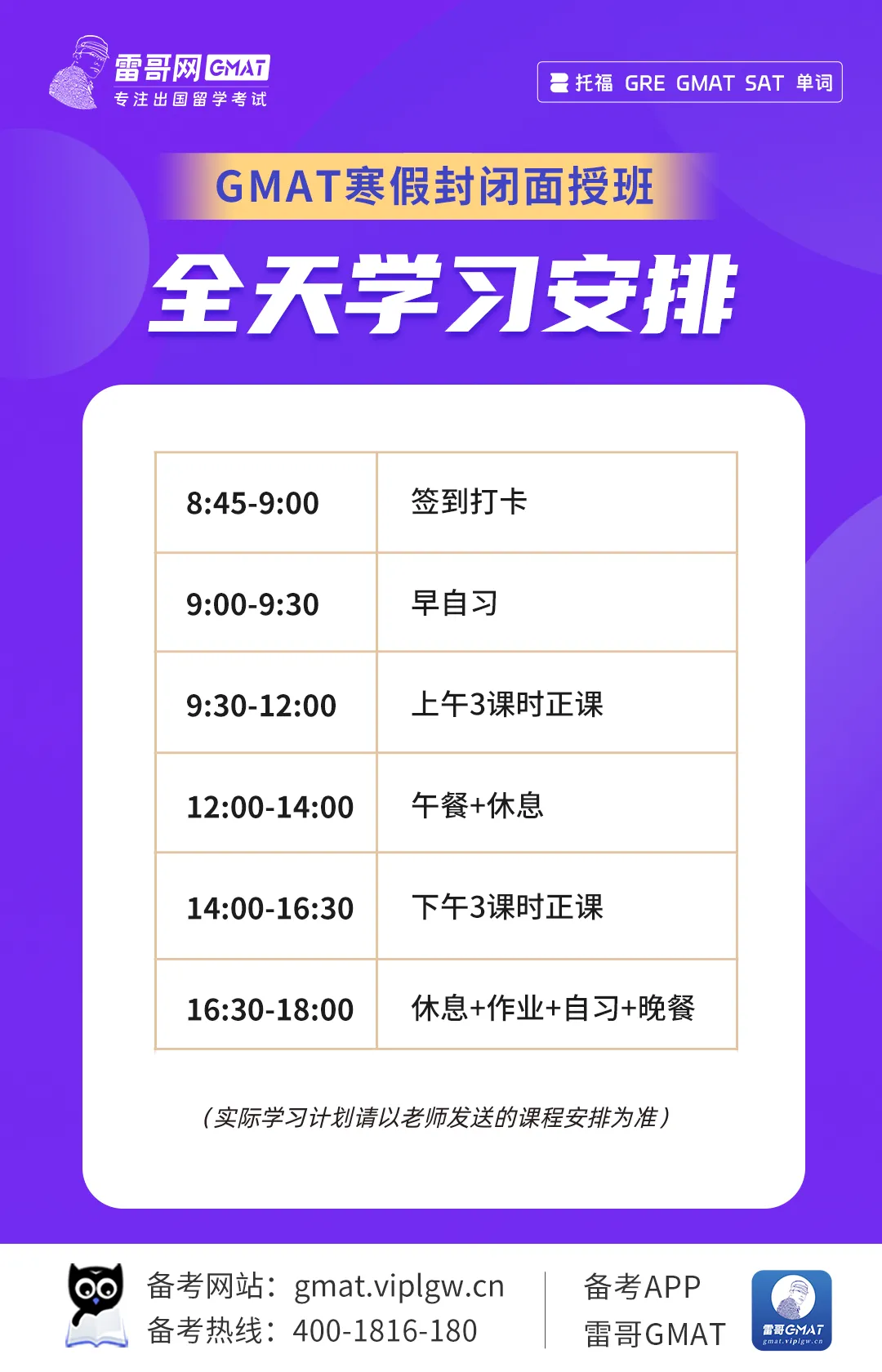 上海/成都/北京/深圳等多地同步开班,雷哥gmat封闭班正在火热预约中,高效出分就选雷哥!扫码添加立即咨询哦!