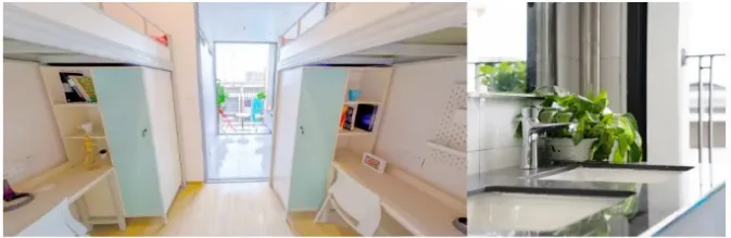 学生宿舍采取“上床下桌、双洗漱台、双卫浴”模式,配备多功能书桌和阶梯式储物柜,依山傍湖、环境优美,智能门禁系统与生活老师日夜值守,营造安全舒适的居住环境