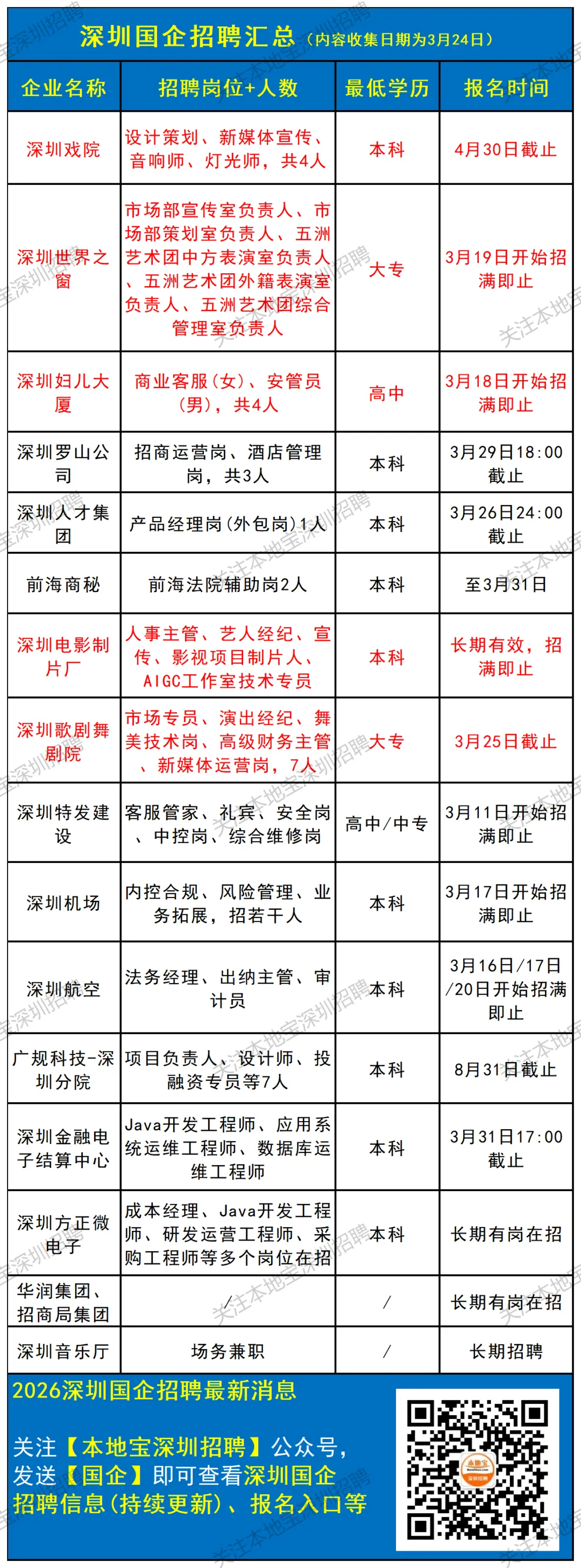 ⭐推荐服务:扫描下方二维码,关注【本地宝深圳招聘】公众号,回复【国企】,即可获取深圳国企招聘最新公告+岗位详情、报名入口、岗位查询