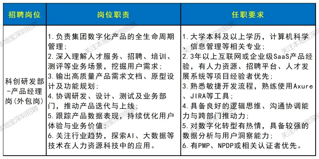 ✅招聘岗位:科创研发部-产品经理岗(外包岗)1名,具体要求如下图所示