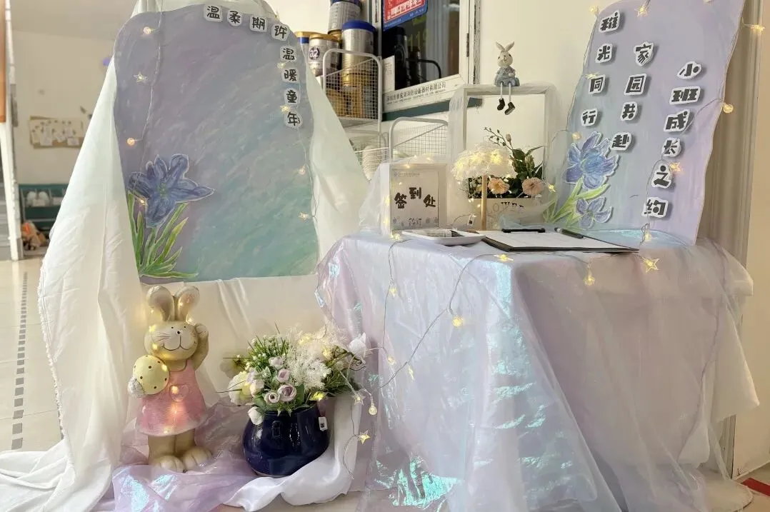 教室里,老师们的布置同样用心。签到台上的温馨一角、走廊里孩子们的作品展、园内精心规划的每一处角落……都在轻声诉说:这里,不仅属于孩子,也属于每一个“我们”。