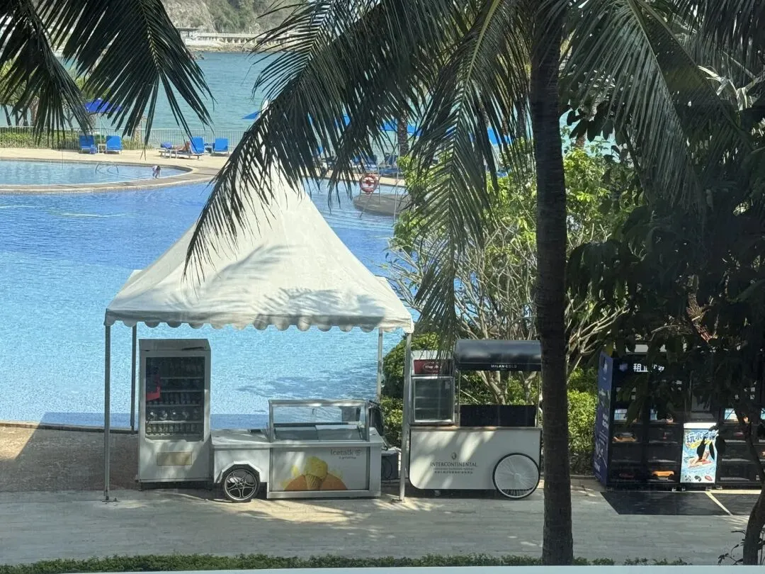 酒店的细节也处处透着贴心:泳池边的小推车藏着冰淇淋和冷饮,玩累了就能随时补给;客房里推开窗就是一线海景,清晨被海浪声唤醒,傍晚看夕阳把海面染成橘色,连发呆都成了一种享受。更别提那些软fufu的蓝色小背包周边,萌到想直接打包带回家,小朋友见了绝对走不动路👜