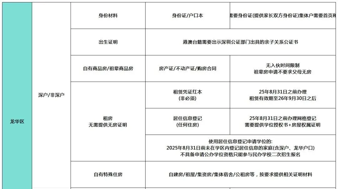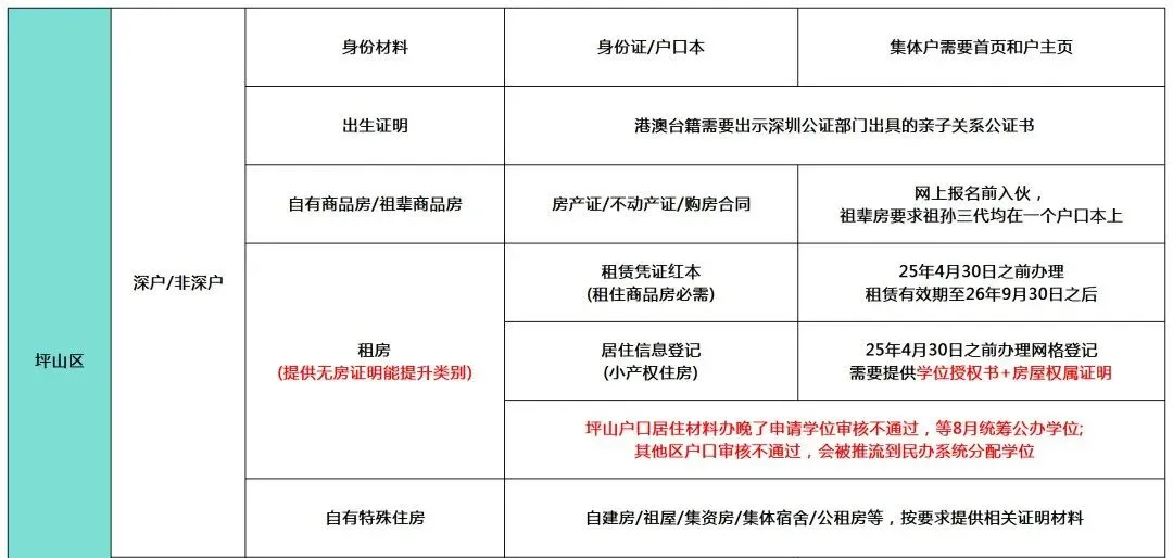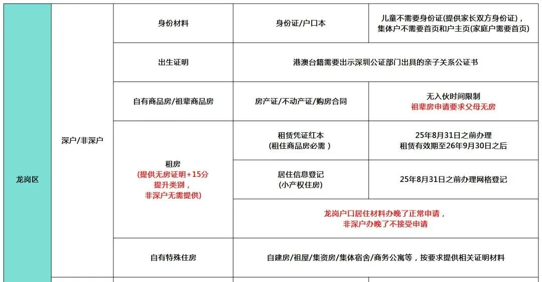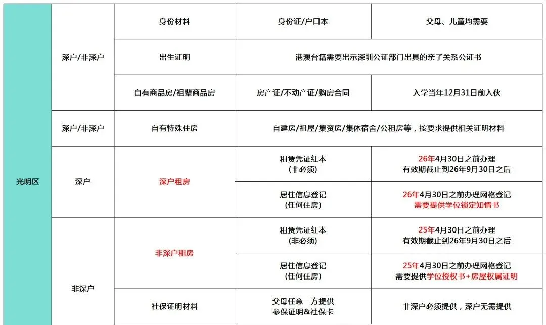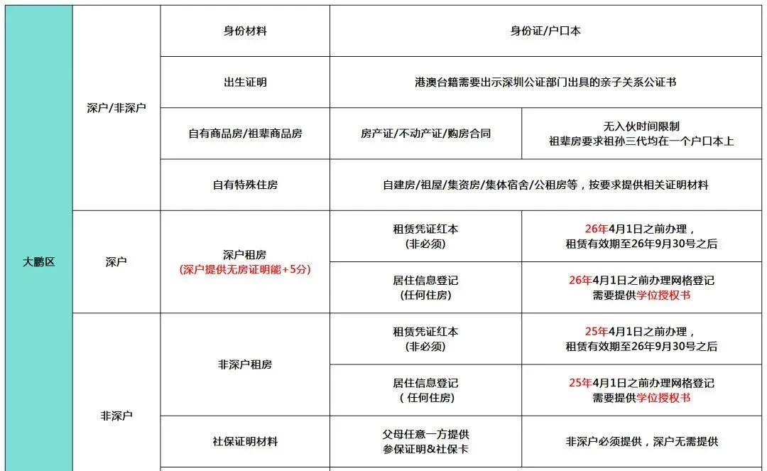 深圳租房申请公办学位,通常需提前一年准备住房材料,对于2026年入学的娃来说目前大部分区已经过了办理时间,但还有部分情况可以办——大鹏、光明、盐田这三个区的深户仍在规定时限内,需要办理家长要抓紧时间了。
