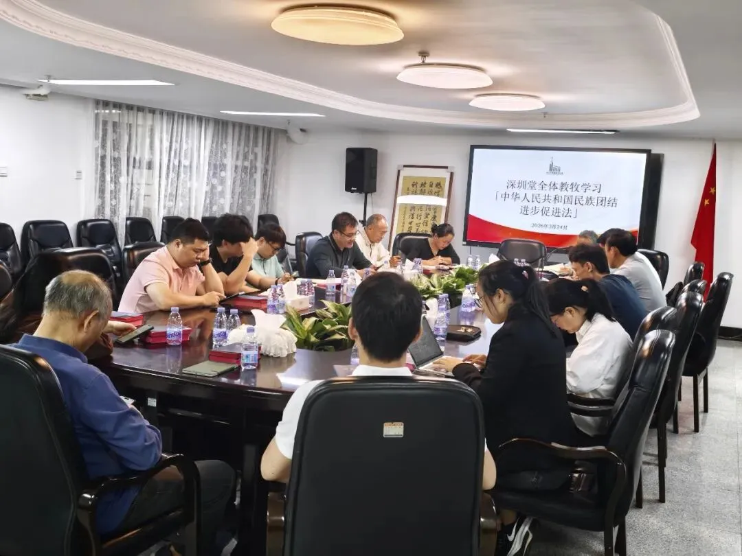 2026年3月24日上午,基督教深圳堂教务部召开全体教牧人员会议,专题学习 《中华人民共和国民族团结进步促进法》。