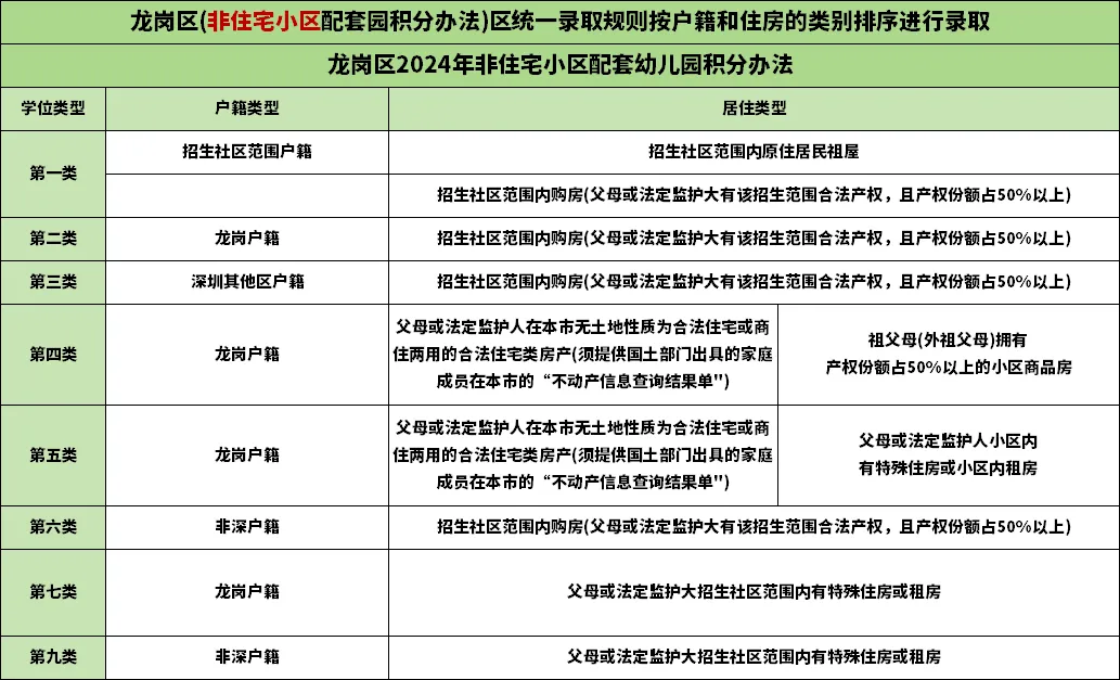 租住商品房的应该在龙岗区房屋租赁部门办理《房屋租赁凭证》,租房面积为整套,承租人须为适龄幼儿的父母或法定监护人,房屋租赁凭证应正在租期以内。