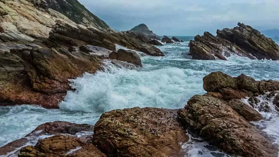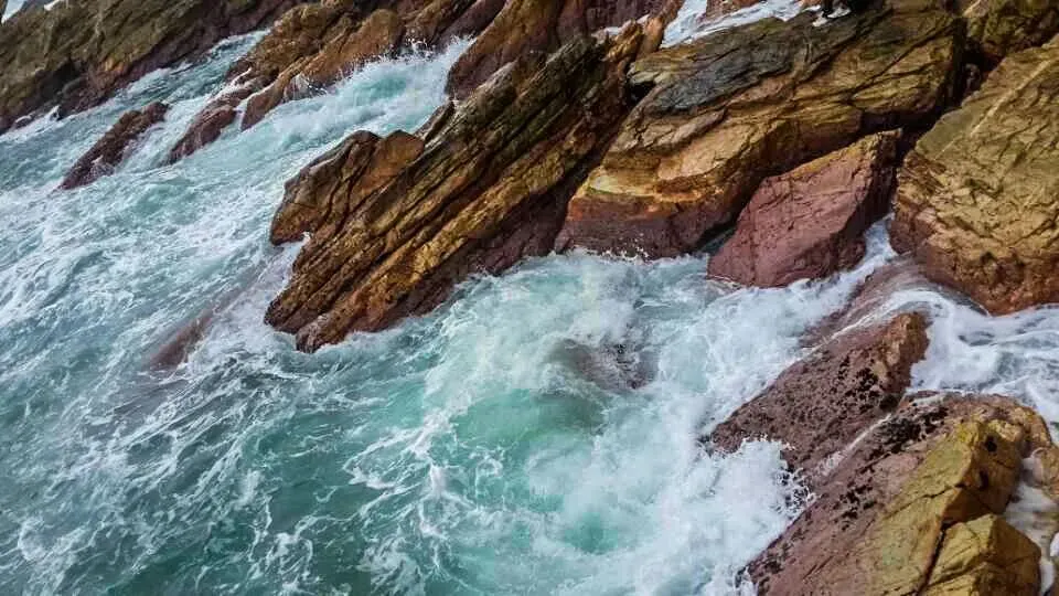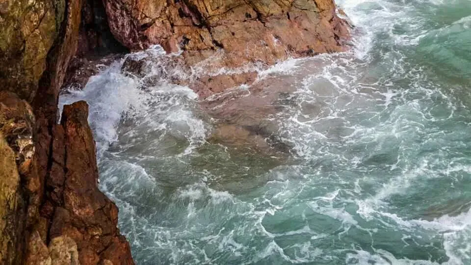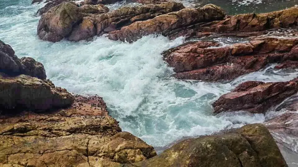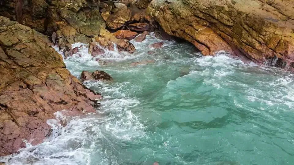 褐红色的岩石如铜墙铁壁,把海水死死困在这方寸之间,浪涛一次次撞在岩壁上,又被狠狠弹回,溅起的水花几乎要扑到脚边,带着咸湿的气息,打湿了裤脚。我下意识地往后退了半步,目光却被这狂野的画面牢牢锁住 —— 这不是景区里被驯化的温柔海浪,是牛奶排独有的野性,它不迎合、不讨好,只是用最原始、最纯粹的力量,演绎着山与海的博弈,张扬又热烈。