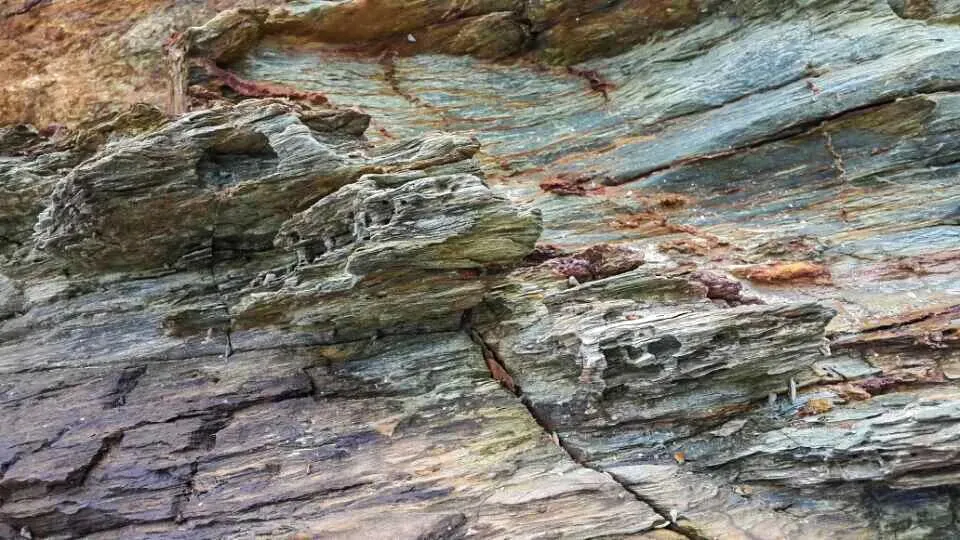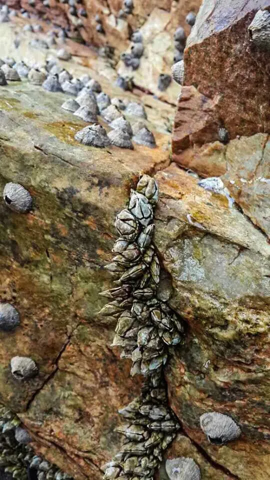 攀过第一块巨型礁石,指尖忍不住抚上粗糙的岩面,才真正读懂了这场亿万年厮磨的痕迹。青灰色的岩面上,嵌着深浅不一的褐红纹路,层层叠叠的层理像大地摊开的史书,每一道褶皱、每一条裂痕,都是时光刻下的刻度。而海浪经年累月啃噬出的蜂窝状孔洞,密密麻麻嵌在岩块上,像无数个小小的蜂巢,偶尔还能看到几枚紧紧吸附的藤壶,嵌在岩石的缝隙里,沉默地见证着这场永不停歇的山海对话。