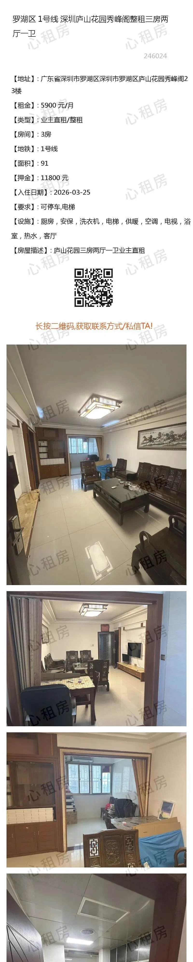 深圳租房>>罗湖区1号线深圳庐山花园秀峰阁整租三房两厅一卫5900元/月深圳房>>罗湖区3号线深圳罗湖区幸福华府A栋转租大单房3400元/月 查看不同房源→→深圳心租房公众号