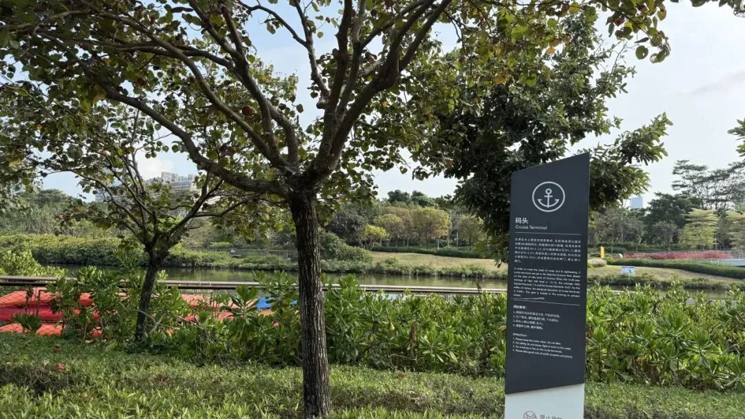 公园里有个“前海打卡点”,我们都不知道具体是打什么卡。舒美女看到对岸电子屏上亮着“前海”两个字,随口说:“是不是指这个?”我也点头:“应该是。”