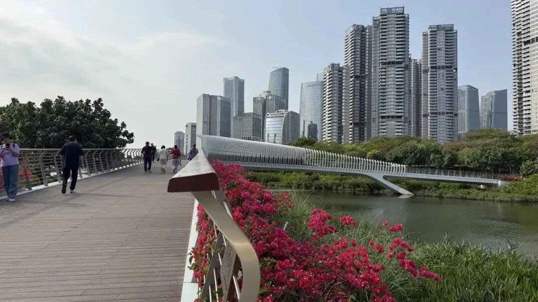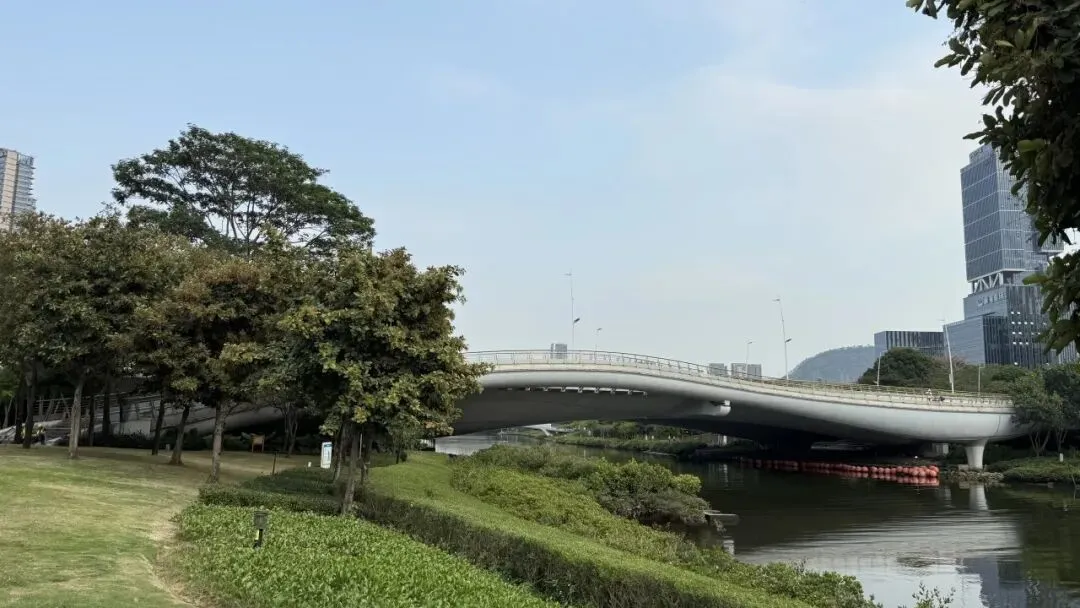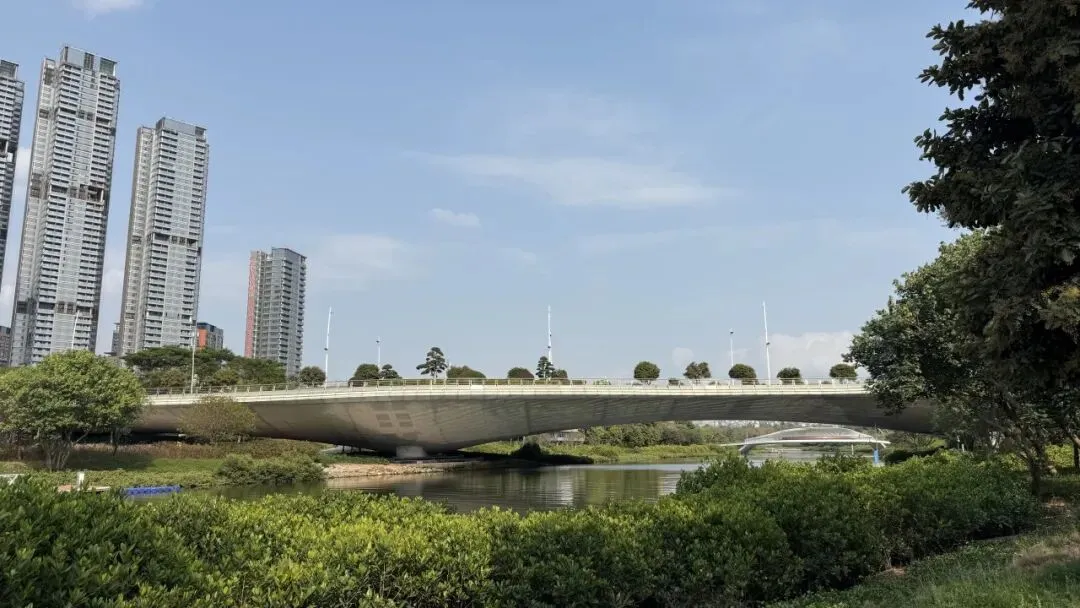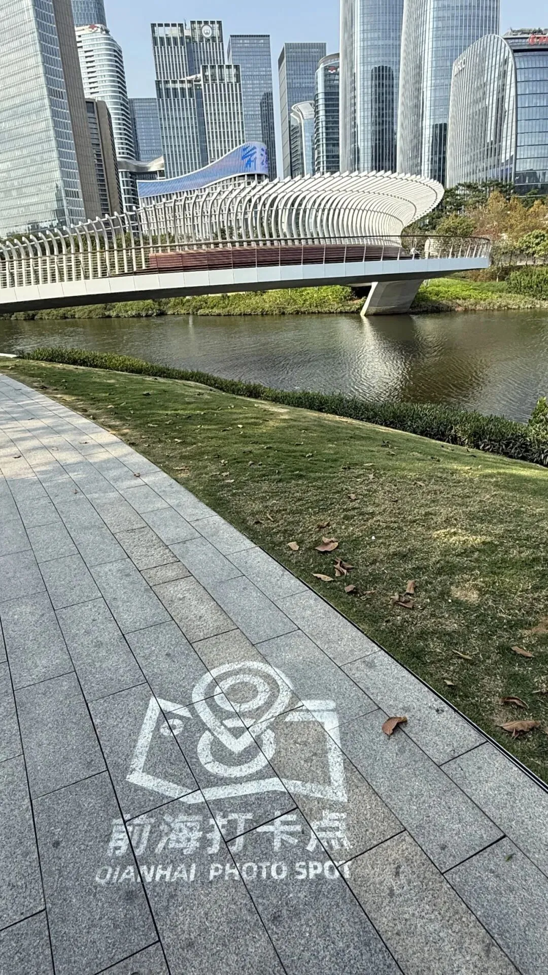 张同学立刻认真拍照,那座桥的设计感确实很吸睛。过了一会儿,她突然恍然大悟:“我知道了!因为那边有‘前海’两个字!”