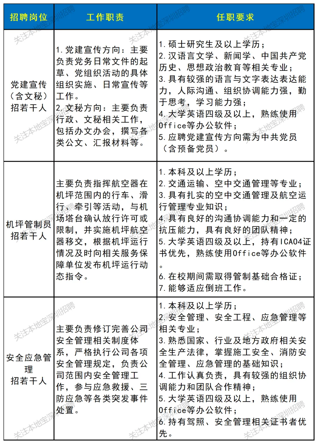 ⭐推荐服务:以上是深圳机场官方发布的岗位,另外还有国企劳务公司也有发布深圳机场的岗位招聘哦,扫描下面二维码,关注【本地宝深圳招聘】公众号,发送【机场】,即可持续获取深圳机场校招、社招最新招聘公告、报名入口、岗位查询等