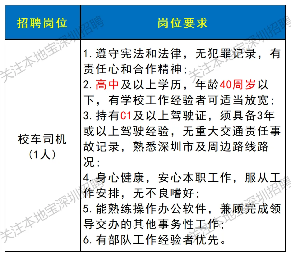 ✅招聘岗位:校车司机1人,要求有C1驾照哦!具体要求如下图所示