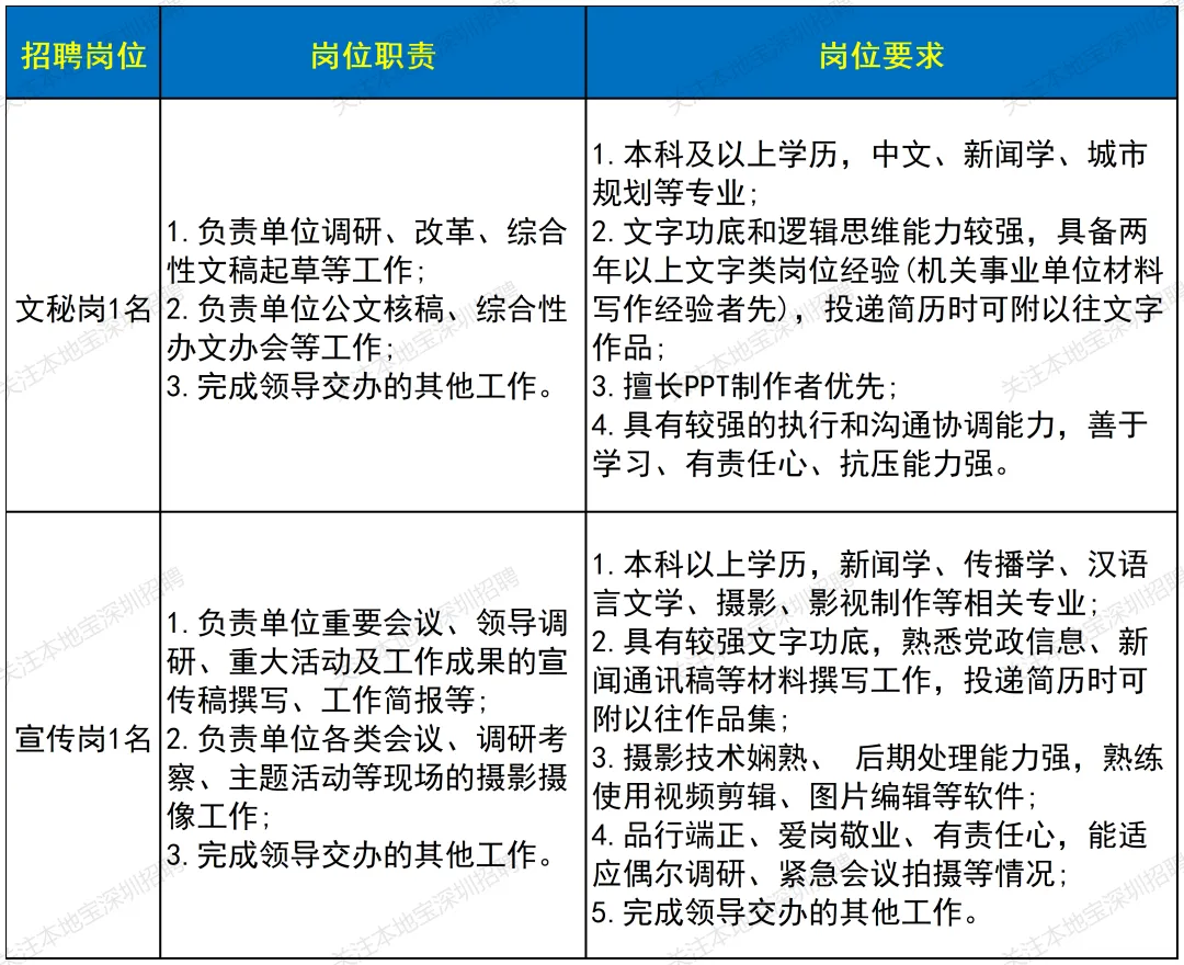 ⭐推荐服务:点击下方卡片,关注【本地宝深圳招聘】公众号或者在【本地宝APP】,回复【政府】,即可持续获取深圳政府部门招聘最新公告、报名入口、岗位查询、报名材料下载