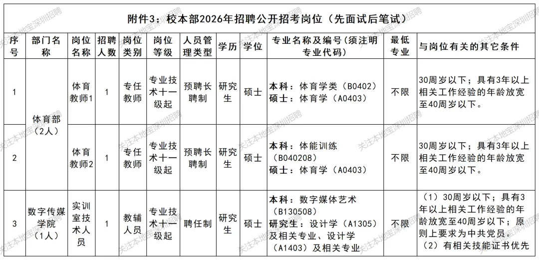 ⭐推荐服务:关注【本地宝深圳招聘】公众号,回复【大学招聘】,即可查看深圳所有高校/技校招聘公告查询入口,查看完整公告+投递方式