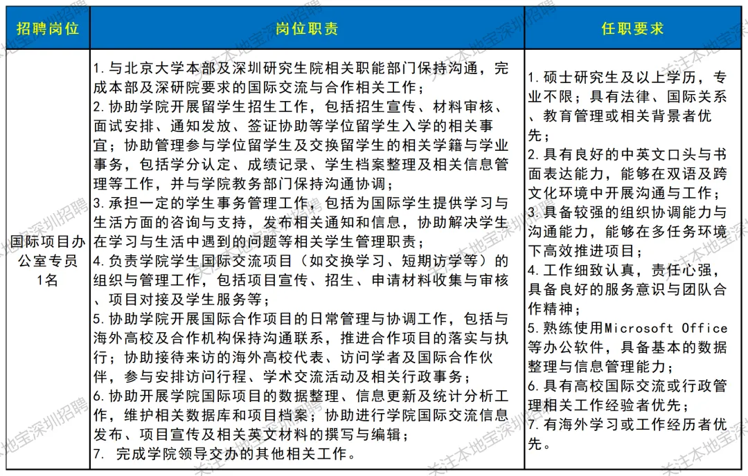 ✅招聘岗位:国际项目办公室专员1人,具体要求如下图所示