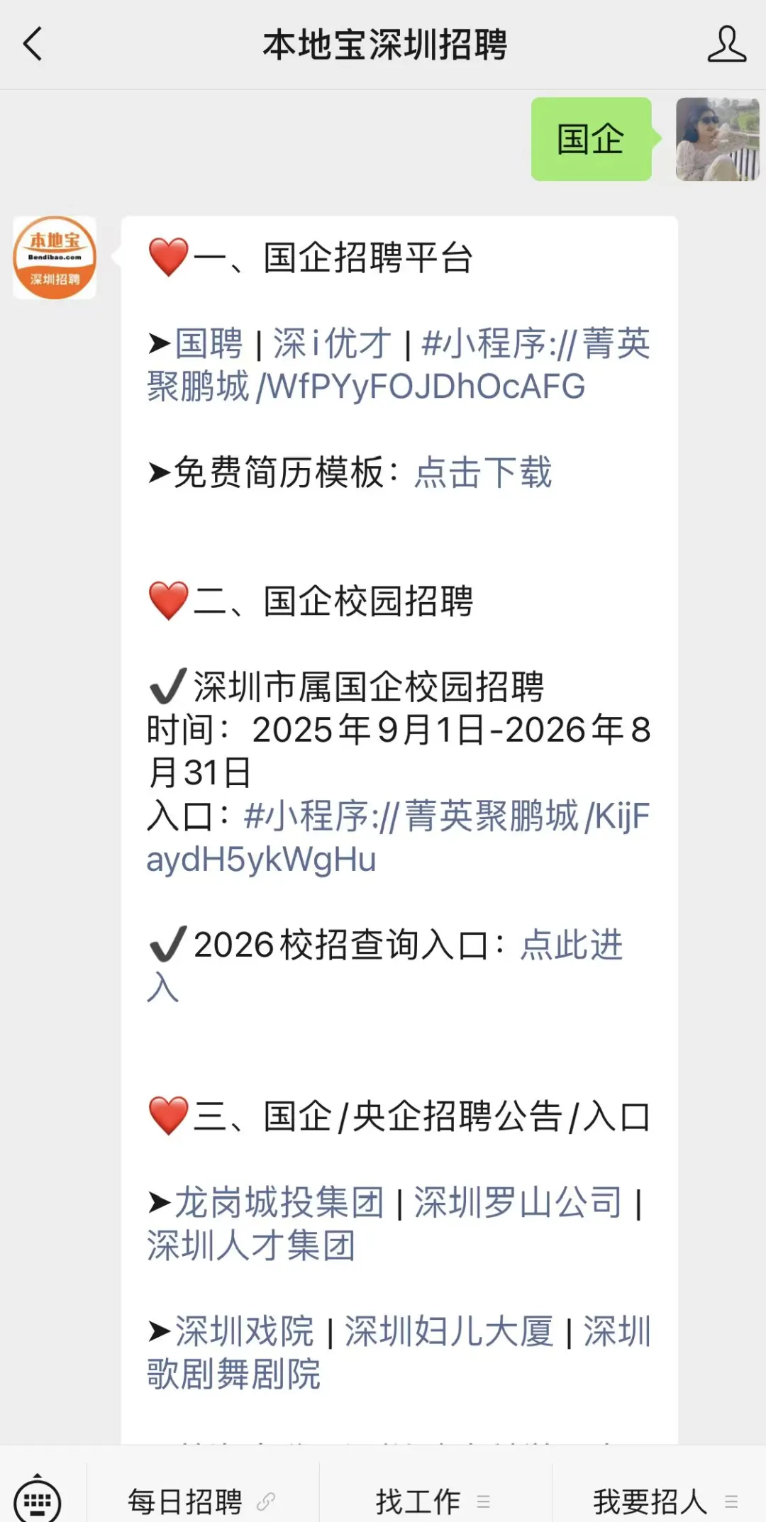 ⭐推荐服务:扫描下方二维码,关注【本地宝深圳招聘】公众号,回复【国企】,即可获取深圳国企招聘最新公告+岗位详情、报名入口、岗位查询