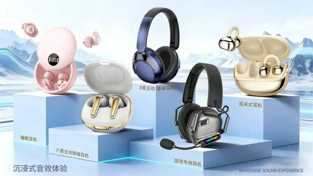 - 蓝牙耳机系列:开放式/骨传导/主动降噪多品类任选,运动不掉落、办公更静谧,支持OEM/ODM定制,满足品牌方、渠道商多元需求。
