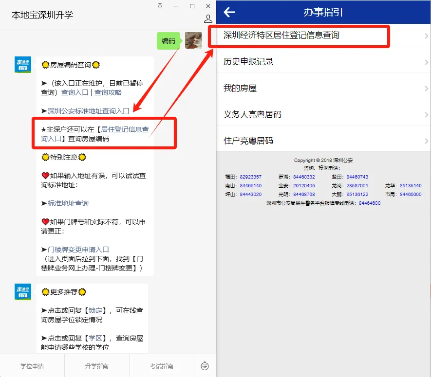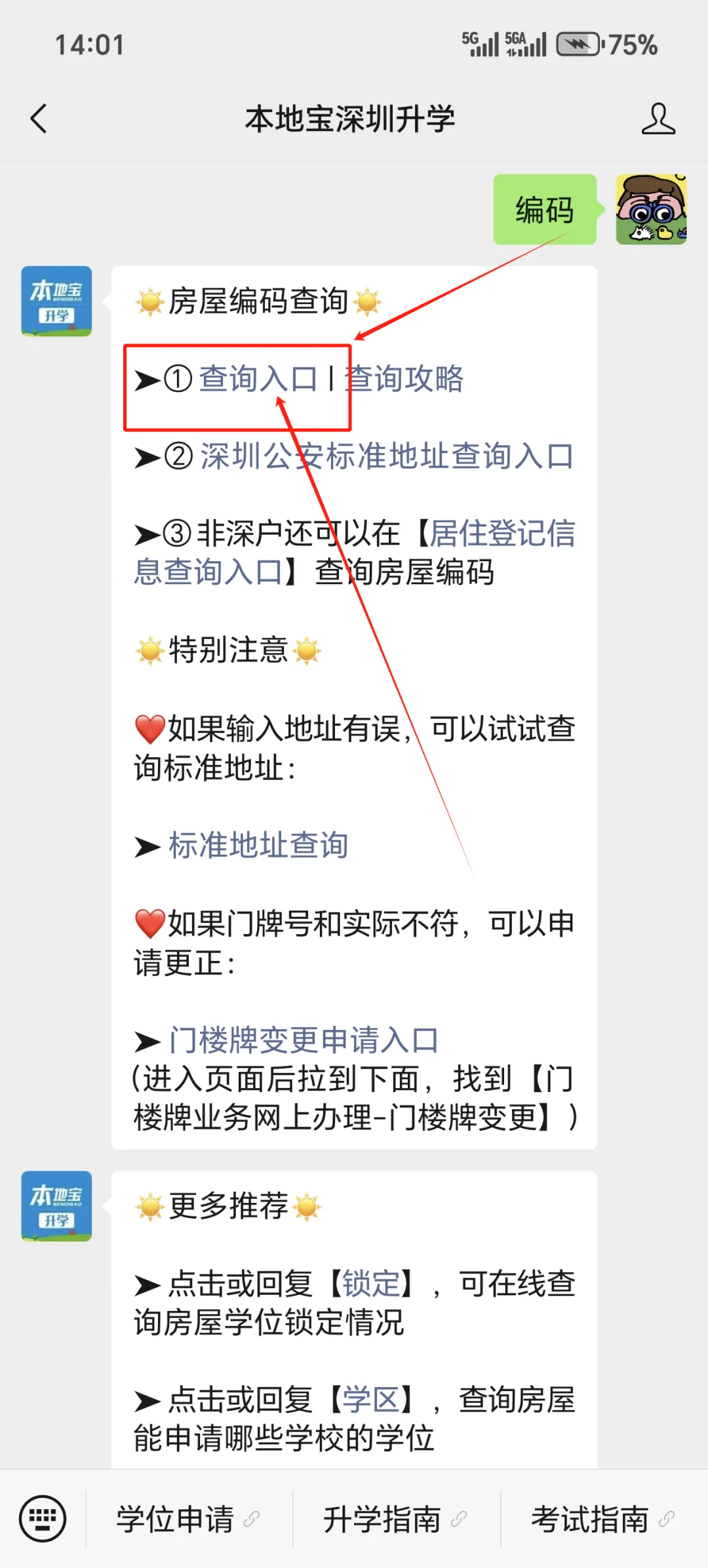 如果你是非深户,可以在本地宝深圳升学回复【编码】后点击“居住登记信息查询入口”,按照下面的流程查到房屋编码