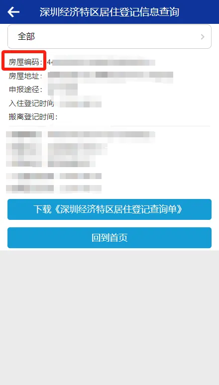 即可看到房屋编码,还能下载深圳居住登记查询单,这也是申请深圳学位的一种住房材料