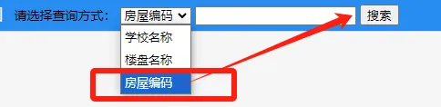 进入学区划分查询入口后,选择房屋编码查询方式,输入复制好的房屋编码,点击搜索即可查到房屋能申请哪些公办学校