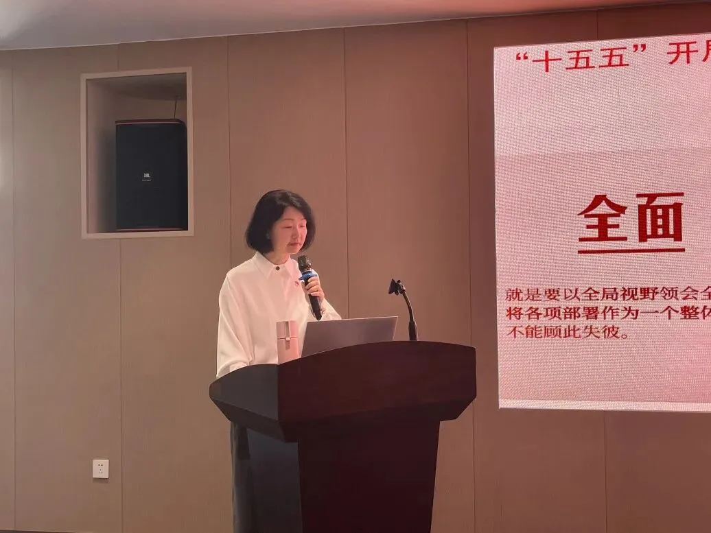 随后,特邀讲师陈磊带来近两小时的专题讲座。她围绕二十届四中全会精神核心内涵与 “十五五” 规划战略布局进行深入解读,从新质生产力发展、产业体系优化到社会组织提质增效等方面,为商会及企业对接政策、抢抓发展机遇提供专业指导。陈磊老师的授课站位高远、内容详实、分析透彻,兼具理论高度与实践深度,引来在场嘉宾阵阵掌声,引发广泛共鸣与深刻启发。