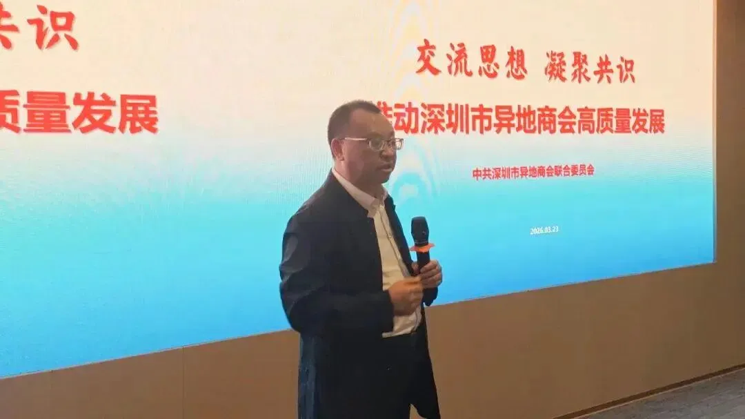 3 月 23 日下午,由深圳市异地商会联合党委主办、湾区沙龙承办的 “交流思想,凝聚共识 —— 推进深圳市异地商会高质量发展主题沙龙” 在深圳太阳岛大厦 18 楼顺利举办。活动紧密围绕二十届四中全会精神及 “十五五” 规划相关部署,以推进党建标准化建设为着力点,汇聚各商会发展动能,为驻深异地商会实现高质量发展谋划新思路、绘就新图景。