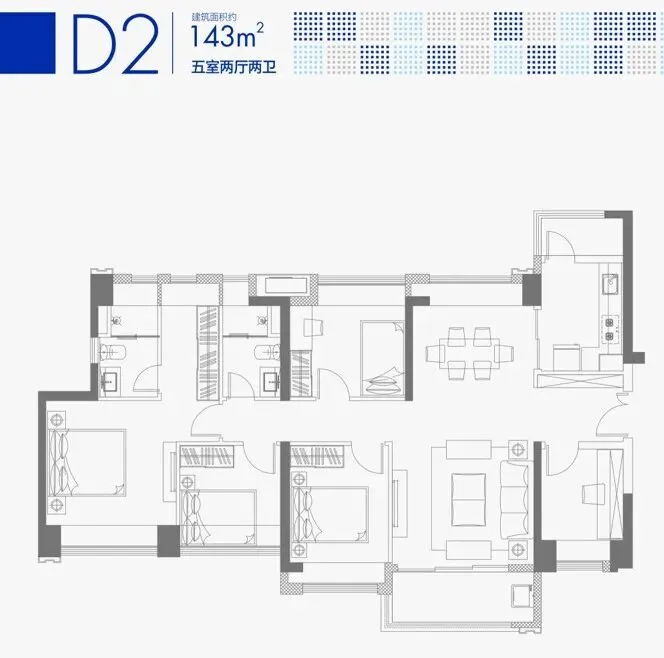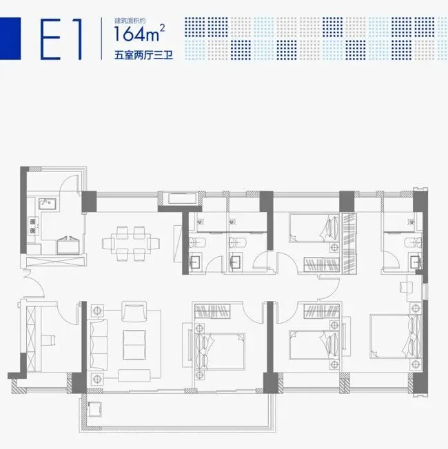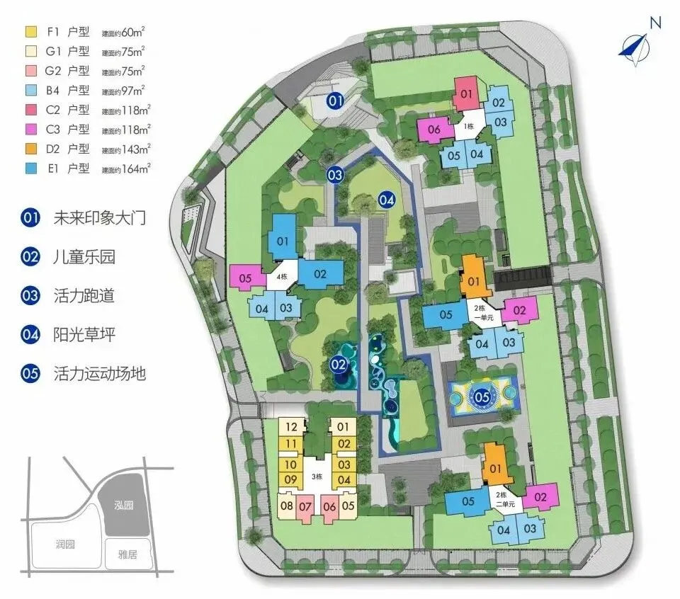 合正方洲瀚府共由6栋总高46-53层的住宅组成,其中1栋1单元/2栋1/2单元住宅47F,1栋2单元住宅46F,3栋1单元住宅53F,3栋2单元住宅52F,5栋是1所18班制幼儿园,园区内规划有多个儿童游戏场地,羽毛球场,足球场,总规划1508户,全部都是商品房,其中1栋2单元3梯5户,其它栋数都是3梯6户设计。