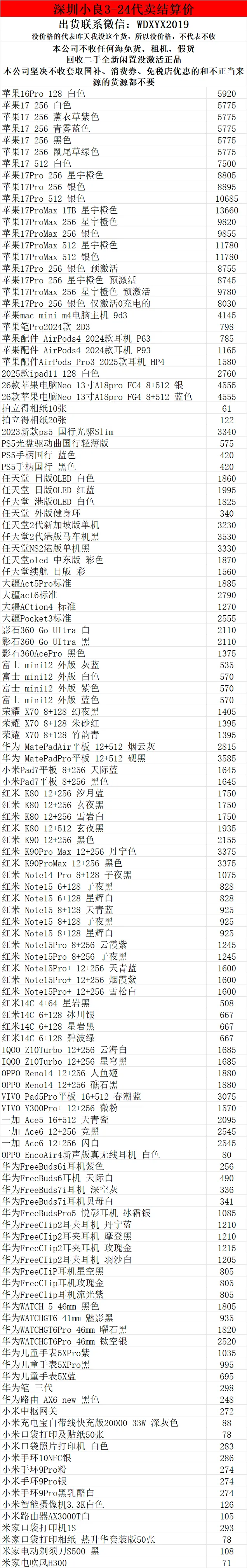 >深圳小良2026.3.24电子产品代卖结算价(美妆价格小程序查看)