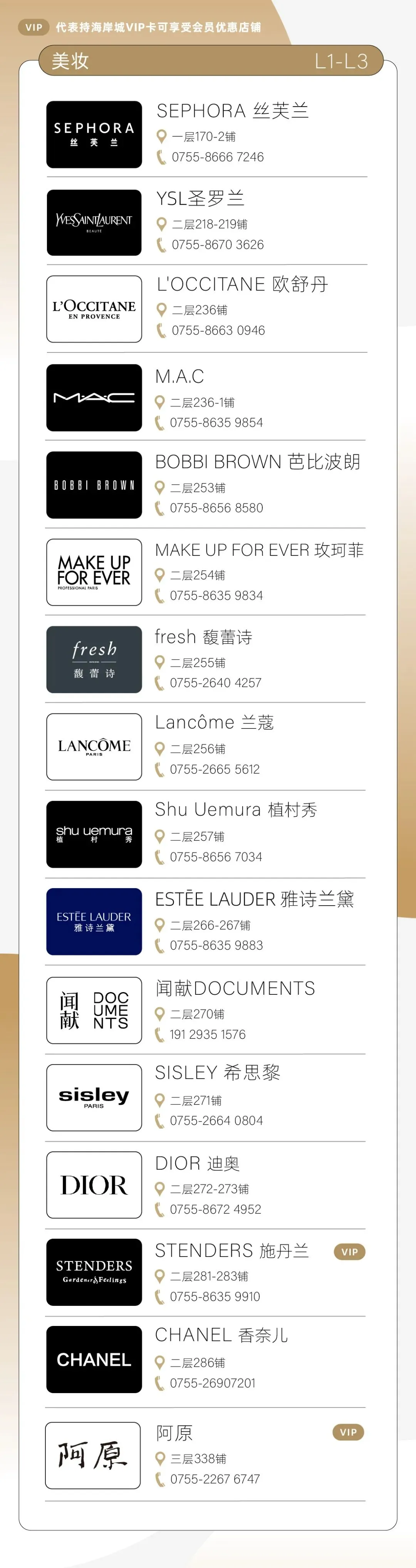 今天带来深圳南山海岸城品牌详情: