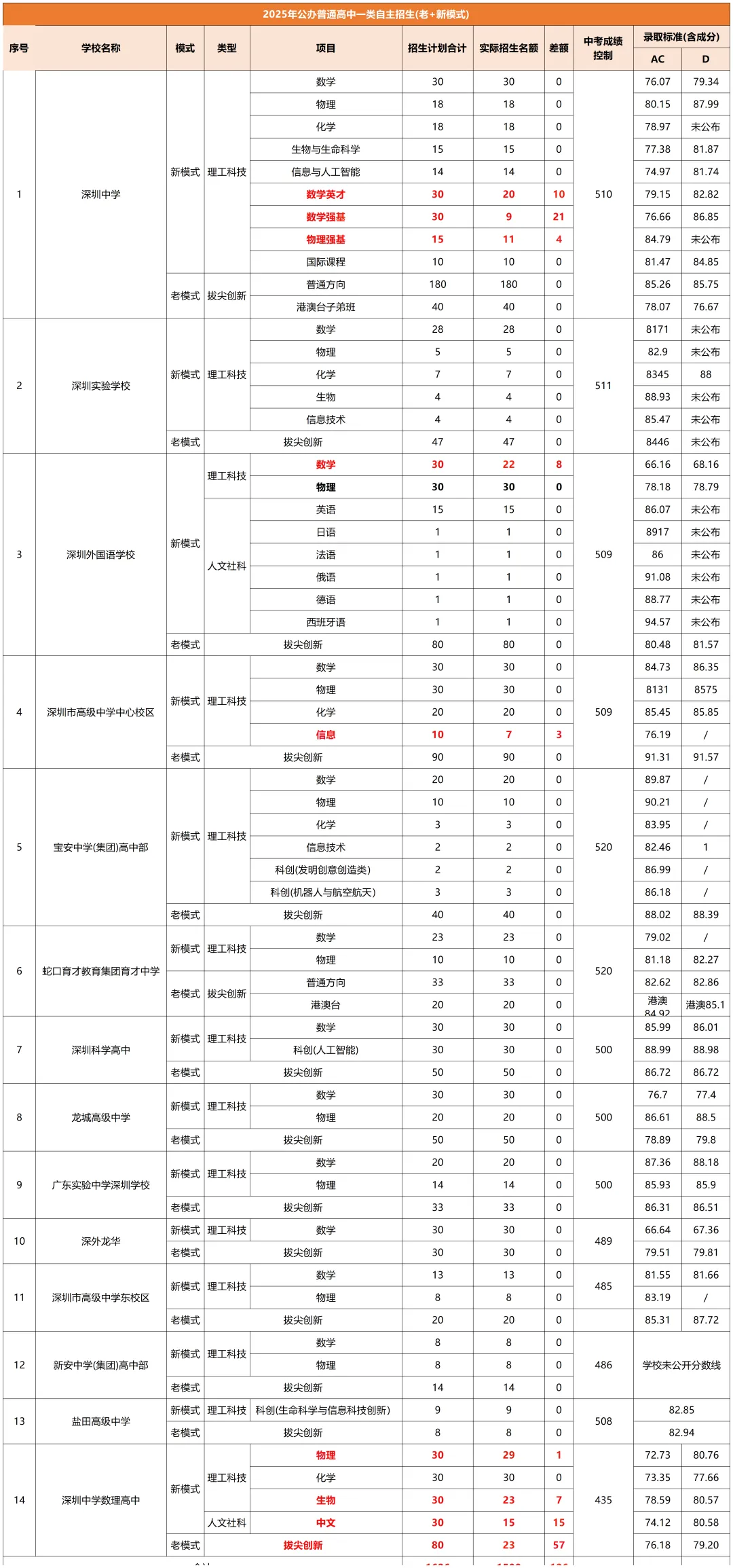 2025年共有14所公办高中采用一类自招“老+新”模式,65所公办高中一类自招采用新模式。