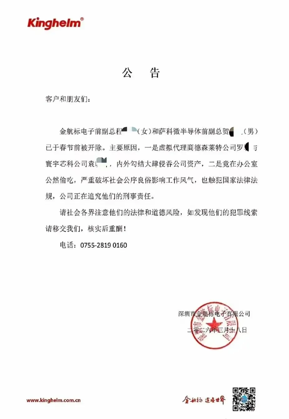 3月18日,宋仕强直接发布了盖有红章的正式公告,面向全网公开处刑,把两位副总的丑事抖得一干二净: