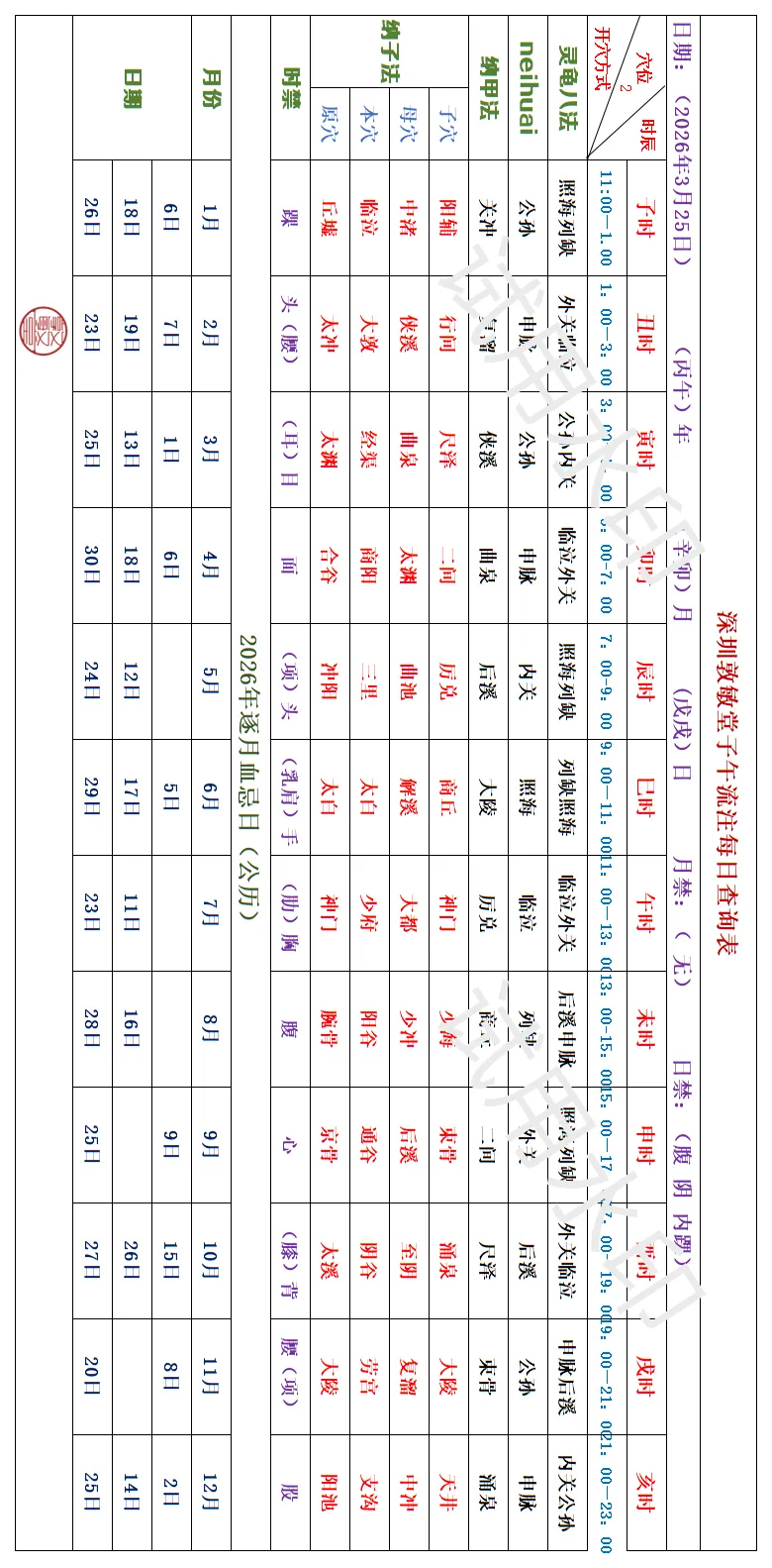 深圳敦敏堂《子午流注:今日开穴》 2026 3月25日