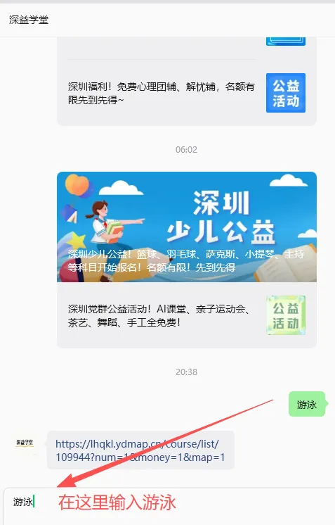 第一步:点击下方名片,关注“深益学堂”微信公众号,菜单栏输入:游泳,获取报名链接。