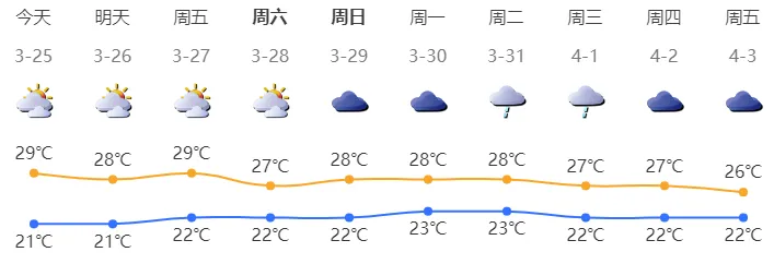 深圳今日多云间晴天,早晚有轻雾,气温21-29℃;东北风3级;相对湿度60%-95%。