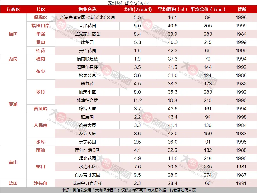 深圳的“老破小”从不是单一的居住产品,而是城市资源的精细化载体。它们通常地处罗湖、福田、南山等核心区域,虽然楼龄偏大(2000年以前),但在租金收益与稀缺资源(如学区)之间,有着极强的支撑力。