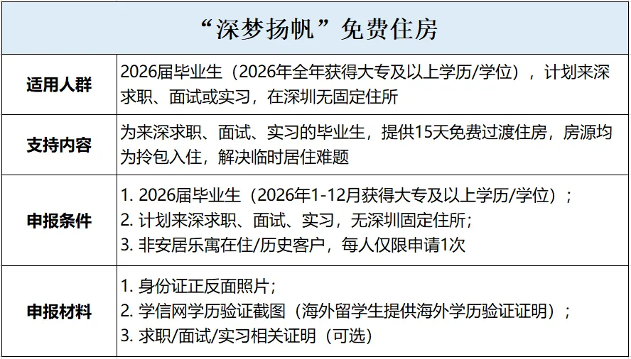 刚毕业来深求职、面试?住酒店太贵、找短租麻烦?这项免费住房福利直接安排,帮你省掉临时住宿开支。